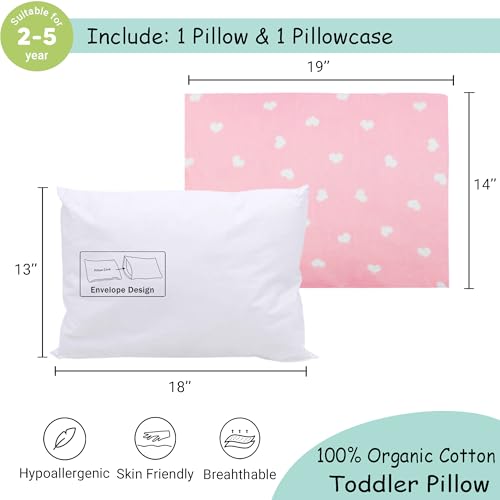 ZPECC Toddler Pillow with Pillowcase - 13x18 Organic Cotton Hypoallergenic Kids Pillow, Baby Essentials for Travel Crib Daycare Stroller (Intended for Age 2 and up) Love