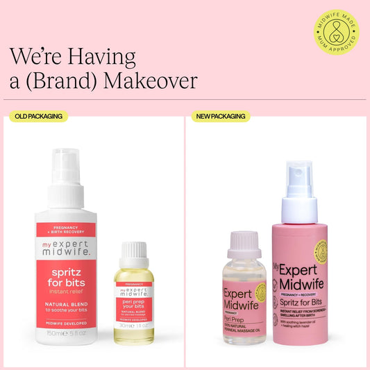 My Expert Midwife Just for Bits - Birth Prep & Recovery Duo with Spritz for Bits Postnatal Relief Perineal Spray and Peri Prep Your Bits Perineal Massage Oil (Pack of 2)