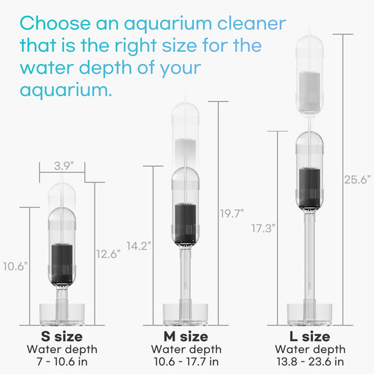 IRUZIO Aquarium Cleaner 2in1 - Medium (Water Depth 10.6–17.7 in) | Substrate Surface Debris Vacuum | Air-Lift Suction | Near-Zero Water Loss | Quiet 45–50 dB