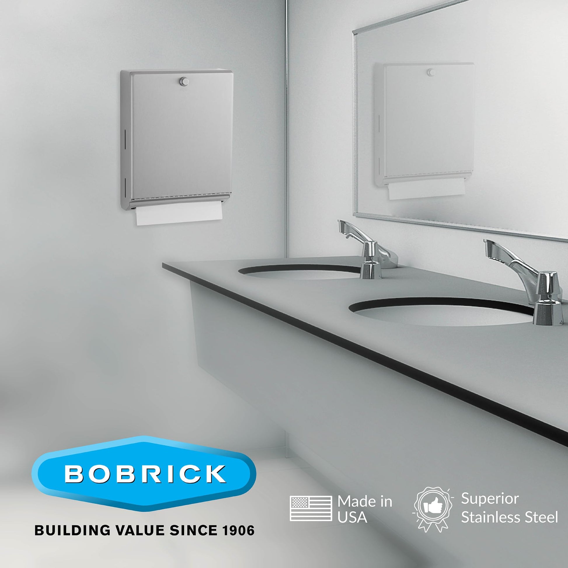 Details: Bobrick B-2620 Surface Mounted Paper Towel Dispenser - Stainless Steel Commercial Bathroom Towel Dispenser with Knob-Latch 400 C-Fold or 525 Multifold Capacity