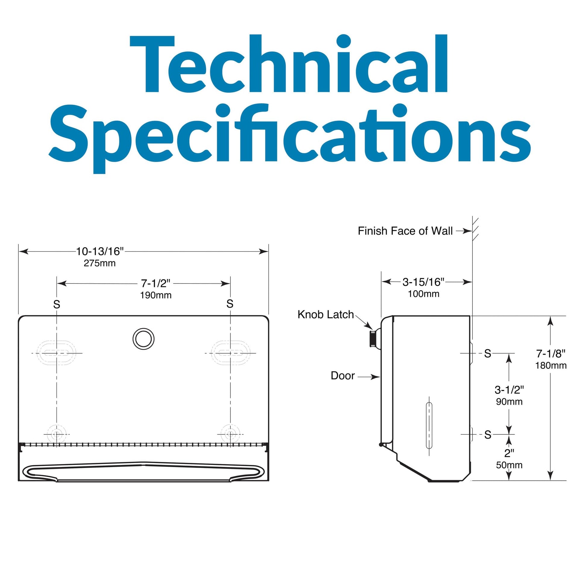 - ADA-Compliant & Space-Saving: This surface-mounted paper towel dispenser meets ADA accessibility requirements, making it suitable for public restrooms. Its compact design (10 3/4″ W, 7 1/8″ H, 4″ D) saves valuable wall space.