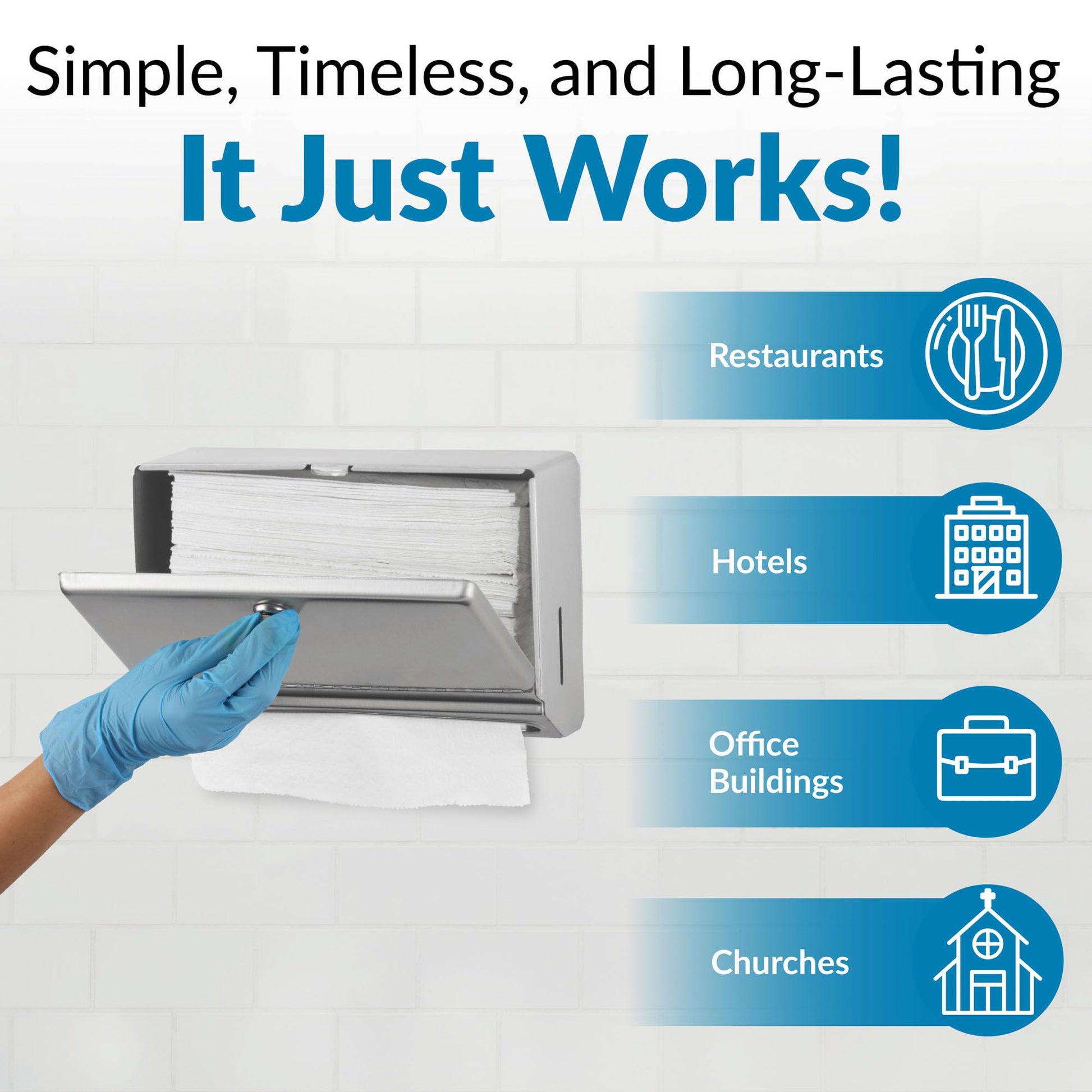 - Durable Stainless Steel Construction: Made from 22-gauge type-304 stainless steel with a sleek satin finish, this Bobrick paper towel dispenser offers long-lasting durability for high-traffic areas, making it ideal for commercial restrooms.