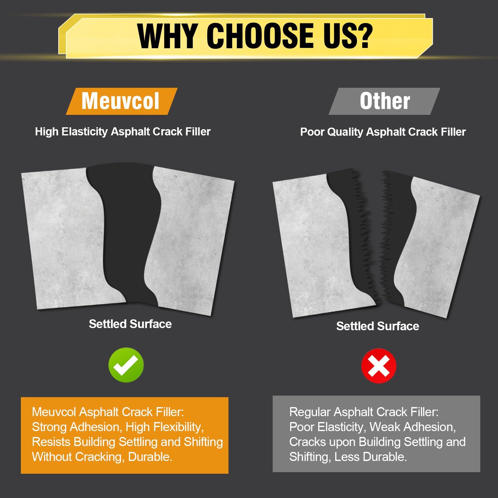 Details: Meuvcol Best asphalt crack filler driveway is the ultimate solution for repairing cracks in asphalt surfaces. With a high elasticity formula, this asphalt Sealant repair filler provides flexibility and durability, making it perfect for driveways, floors, and walls. Its waterproof protection prevents water infiltration, ensuring long-lasting repairs. The easy-to-use applicator allows for even application, making it suitable for both professionals and DIY enthusiasts. Whether you're dealing with minor cracks or major repairs, Meuvcol driveway asphalt sealer is the versatile solution you need to keep your concrete surfaces in top condition. Order now and experience the difference!